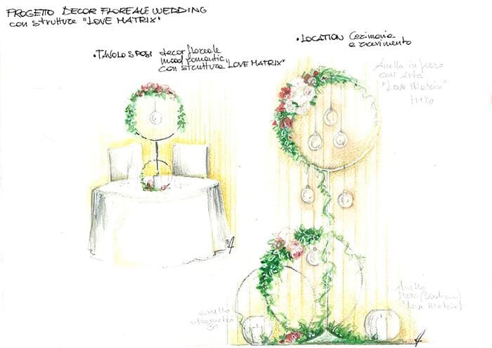 L’ anello in ferro diametro 50 cm con asta 80 cm fa parte della linea strutture in ferro per addobbi matrimoniali “Love Matrix”