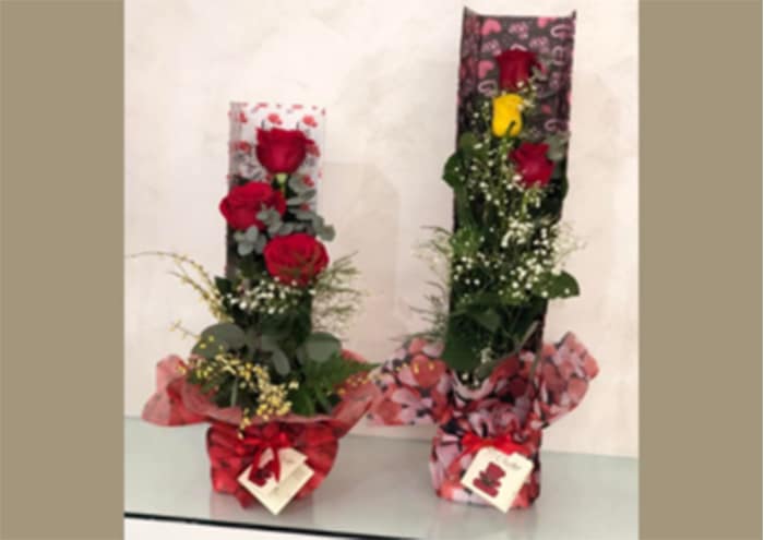 La confezione regalo per rose che vedi in questa pagina è molto particolare perché ti permette di lavorare 3-6 rose in verticale e presentare così una originale composizione vegetativa su spugna.