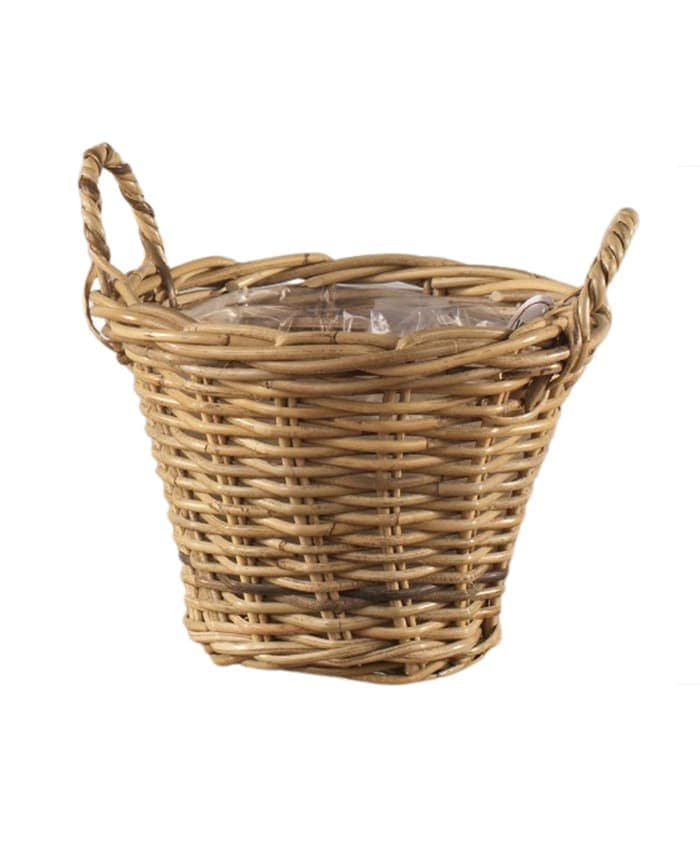 Cachepot vimini manici in rattan kubu diametro 30 h23 cm