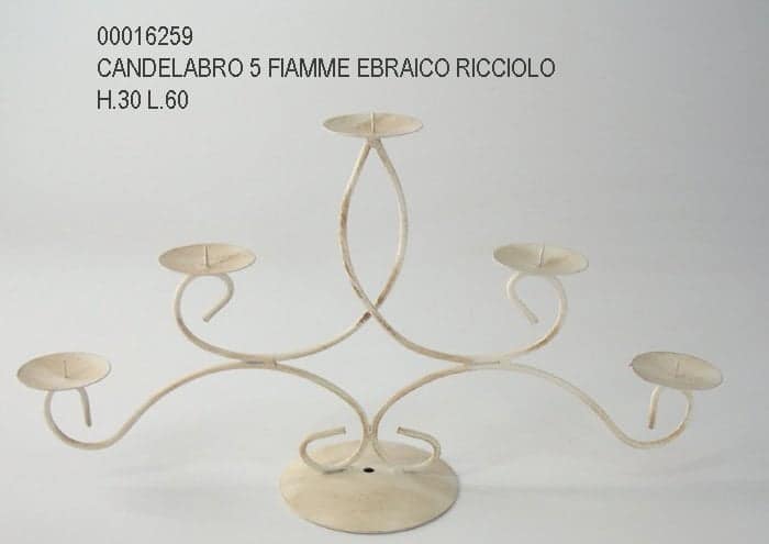 Candelabro ferro 5 fiamme in linea stile shabby chic alto 30 cm