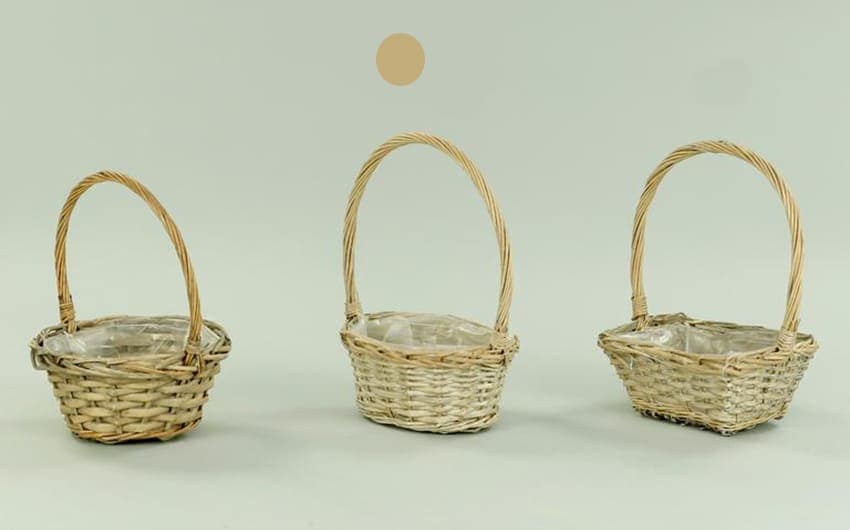 Cesto vimini grigio con manico per creazioni floreali e centrotavola