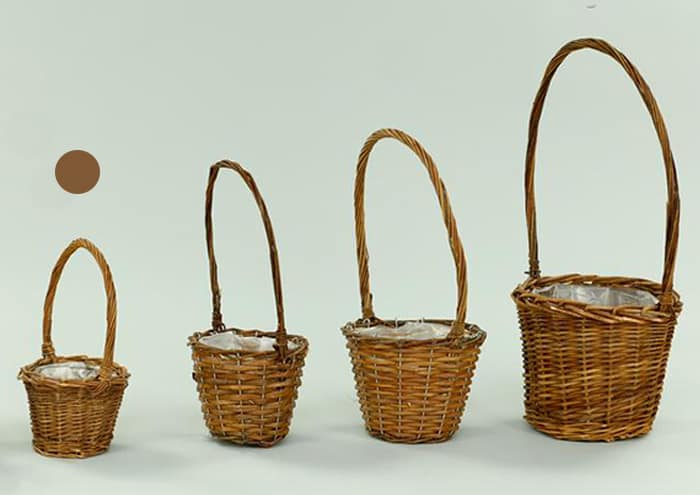 Cestino vimini scuro con manico per piante diametro 10 cm