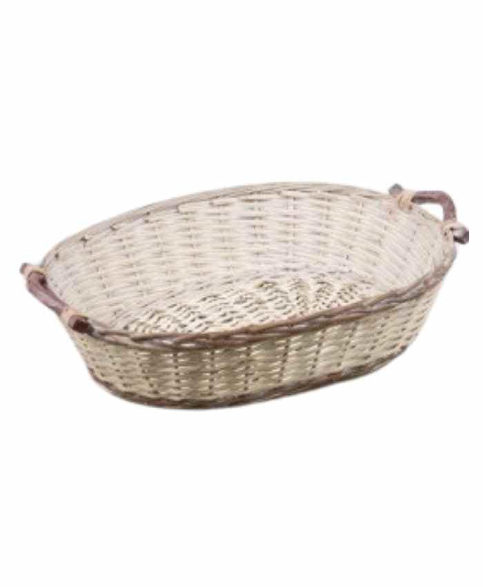 Cesto confezionamento Natalizio ovale in vimini bianco e marrone cm 57×44 h 14