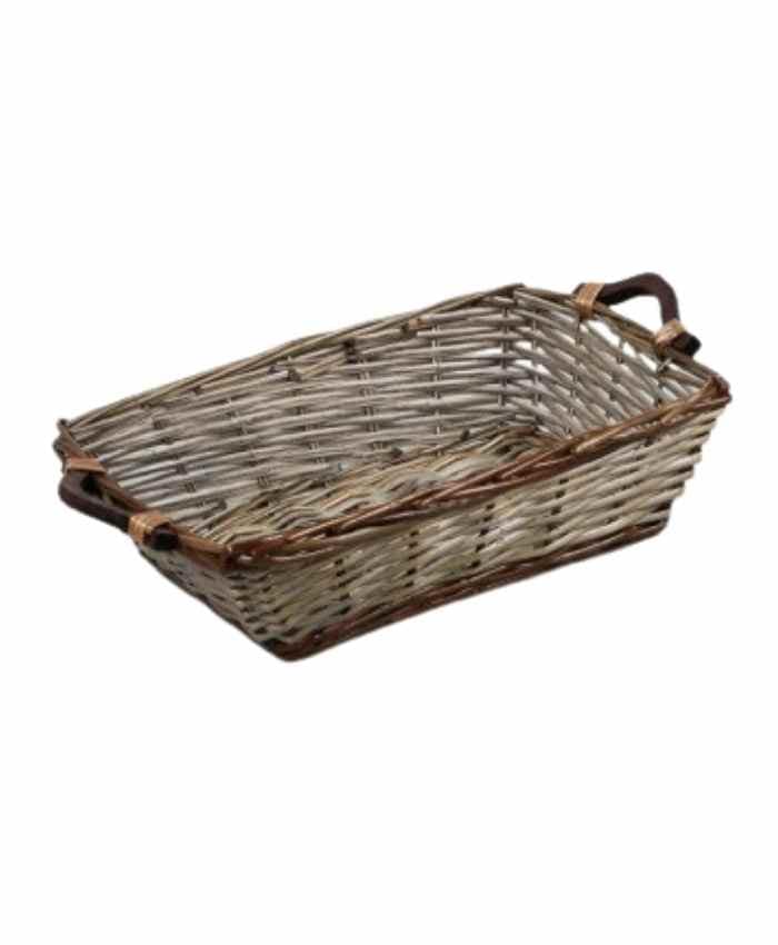 Cesto confezionamento Natalizio rettangolare in vimini grigio e marrone cm 40×30 h 12
