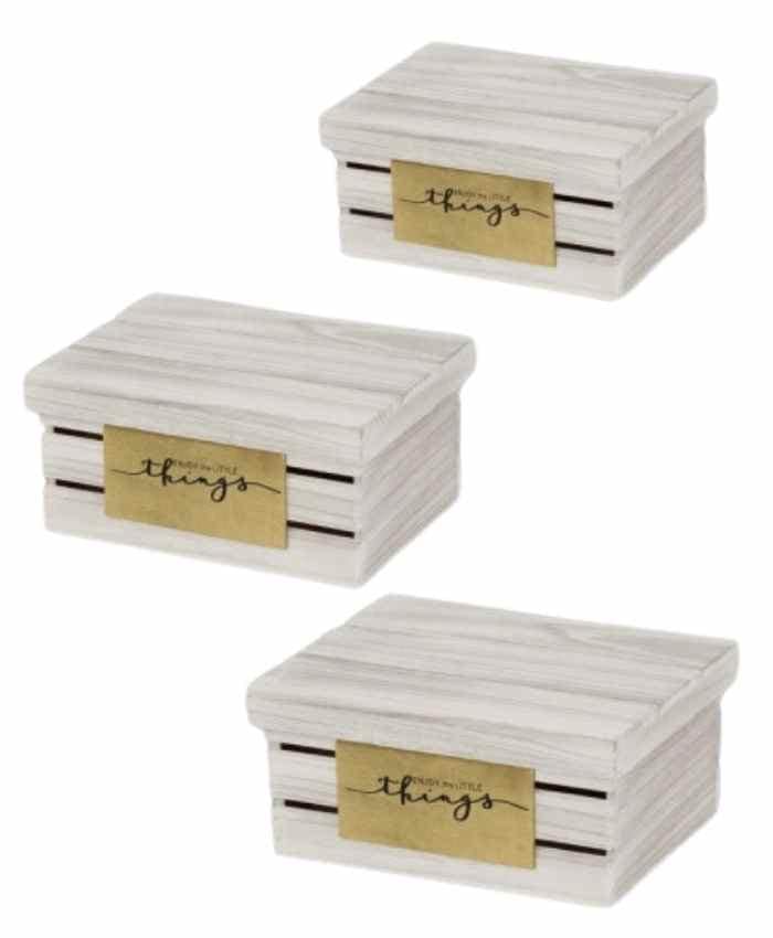 Cesto confezionamento Natalizio Set 3 Scatole in legno Bianco con targhetta cm Gr 38×28 h 16 Md 34×22 h 15 Picc 28×20 h 14