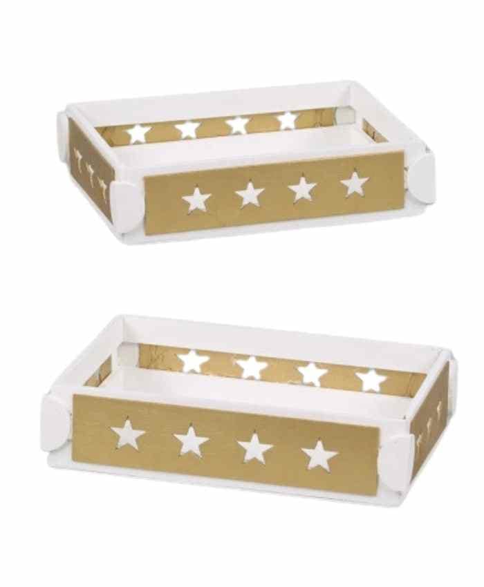 Cesto confezionamento Set 2 cassettine legno Bianco con stelle cm 36×26 h 9 e 31×23 h 8