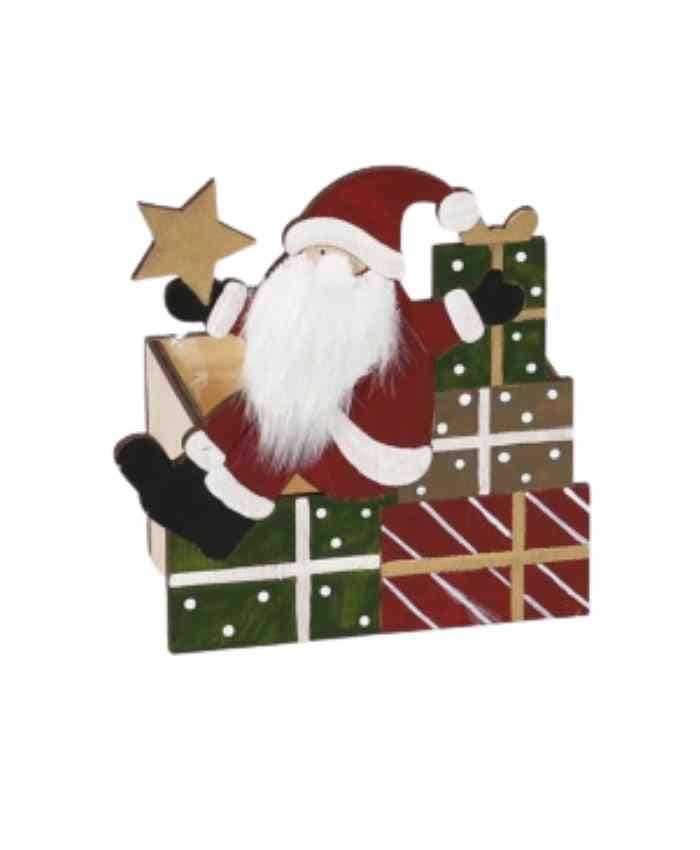 Cesto confezione in legno Cassetta Babbo Natale con regali cm 15×9 h 16
