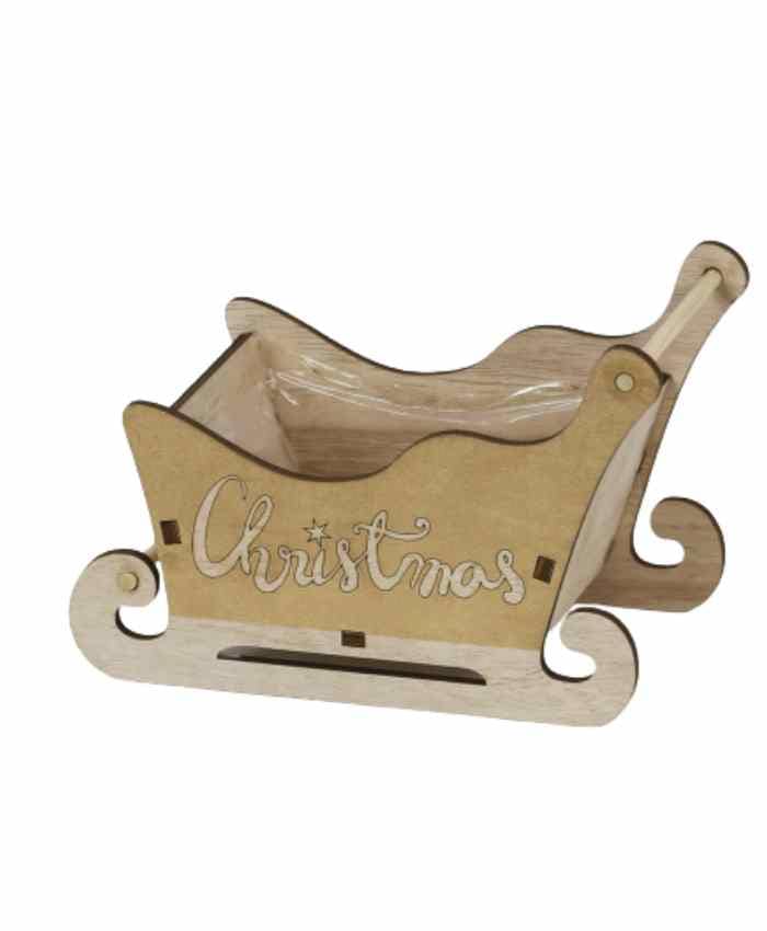 Cesto confezione in legno slitta con scritta Christmas marrone cm 20×11 h 13