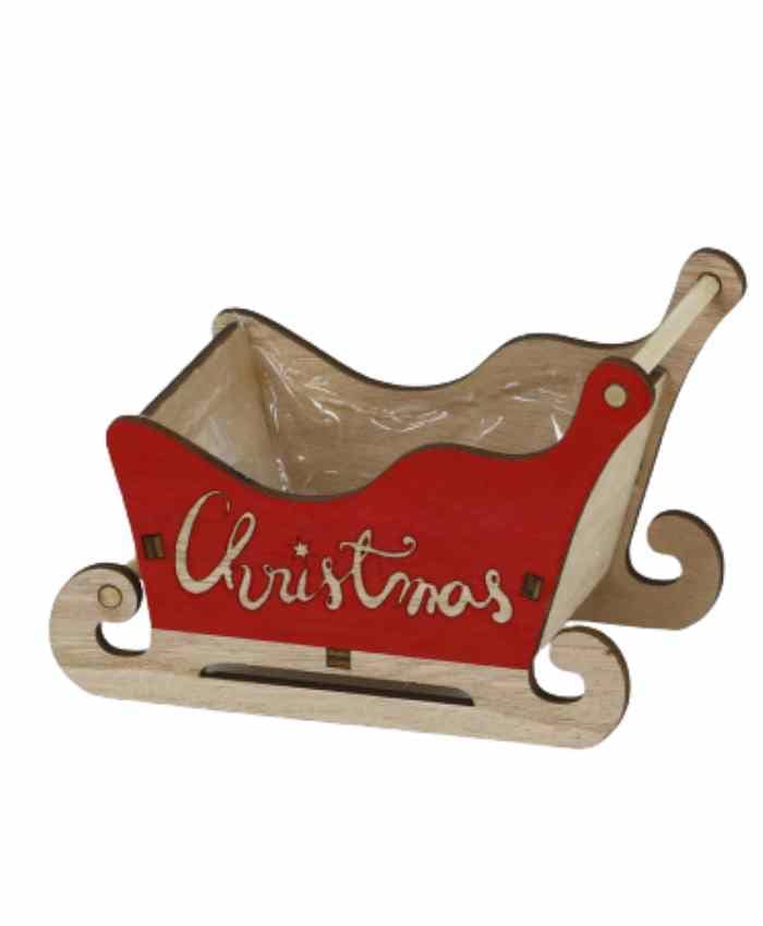 Cesto confezione in legno slitta con scritta Christmas rossa cm 16×9 h 11