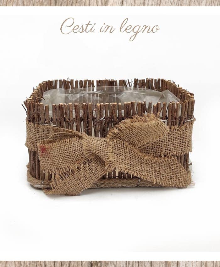 Cesto legno quadrato rametti con fiocco juta cm 20×20 h10