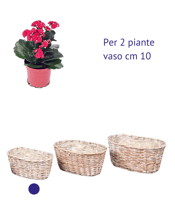 Cesto ovale in vimini naturale con armatura in ferro per 2 piante vaso 10 cm