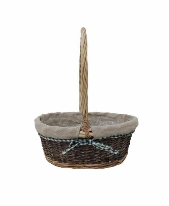 Cesto per confezioni Natale Ovale in vimini rivestito stoffa cm 26×19 h 10