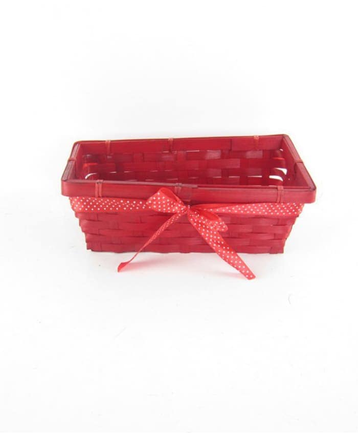 Cesto rettangolare bamboo rosso con fiocco cm 25×12 h10
