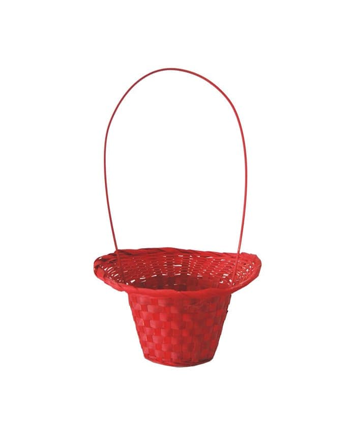 Cesto vimini bamboo rosso falda con manico alto per piante vaso 12 cm