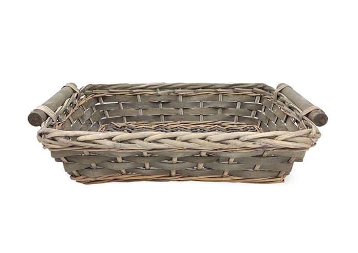 Cesto vuoto rettangolare grigio manici legno cm 50×40 h13