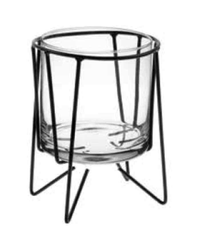 Cilindro vetro per piante vaso 12 cm su piedistallo ferro diametro 13 alto 18 cm