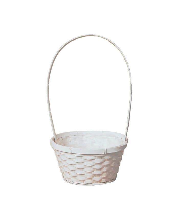 Ciotola vimini in bamboo colore bianco con manico alto e orlo rinforzato diametro 25 cm.