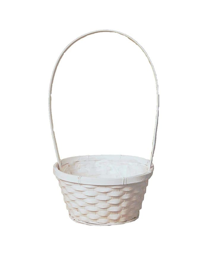 Ciotola vimini in bamboo colore bianco con manico alto e orlo rinforzato diametro 28 cm. Adatta ad accogliere più piante con vaso 14 cm.