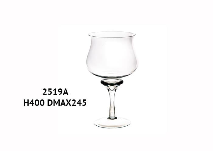 Coppa in vetro con gambo sagomato diametro 24 alto 40 cm