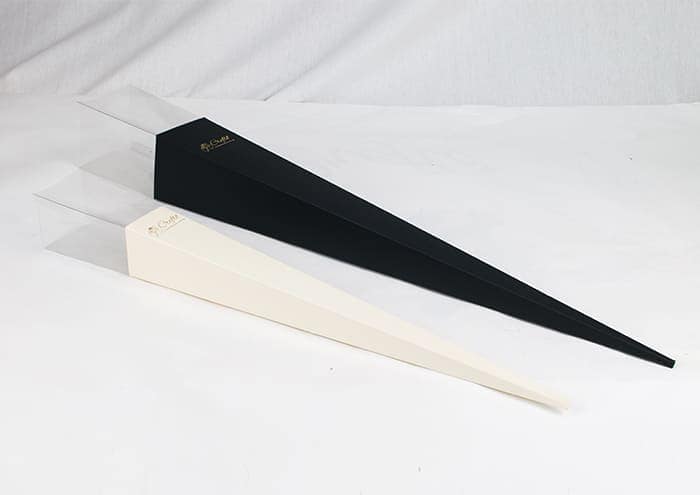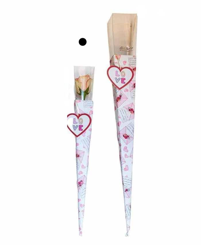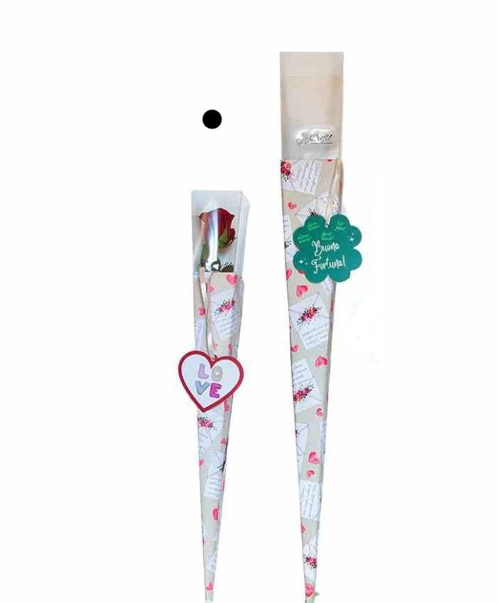 Ecco una confezione pratica e sfiziosa per confezionare una rosa singola. Decora questa scatola con fantasia e offri ai tuoi clienti una soluzione alternativa per i loro pensierini. Disponibile in vari colori e fantasia.