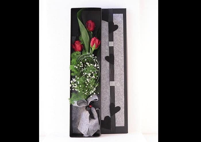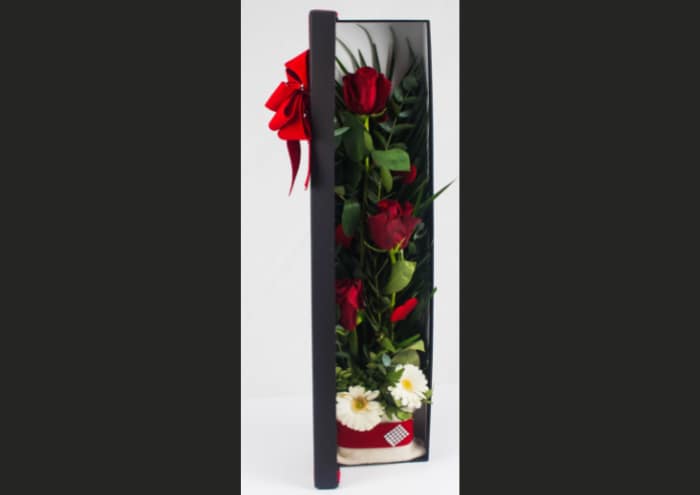 Scegli senza pensieri queste Intense Passion scatole rettangolari per 3 o 5 rose così anche pochi fiori appariranno ancora più pregiati.
