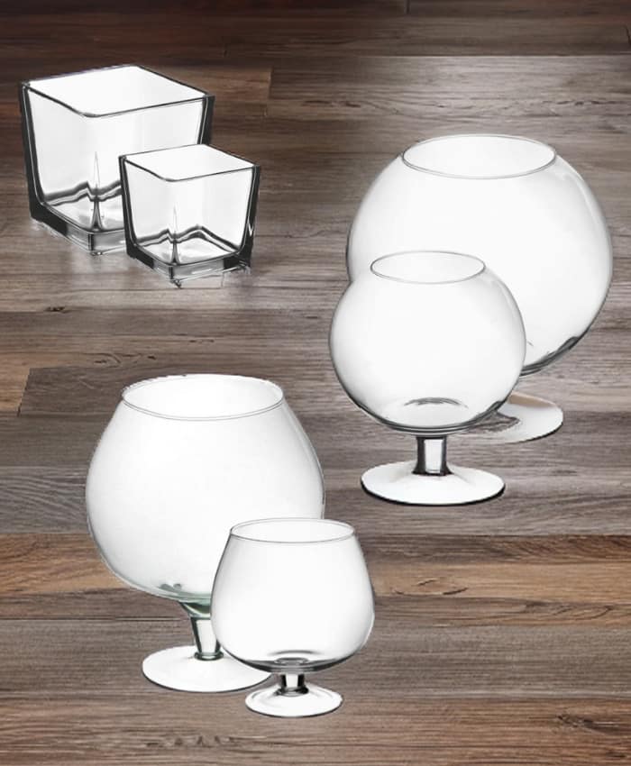 Grazie al Pacchetto Pacchetto Alzate cubi e sfere in vetro Economico Mix base, hai quasi 100 contenitori dove creare composizioni a prezzo crescente. Così potrai lavorare con il massimo profitto, piccole piante e fiori.