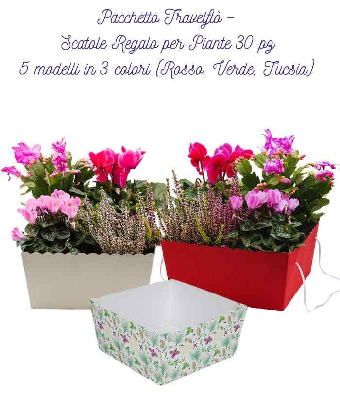 Il Pacchetto Travelflò 4 piante – 20 pezzi in 2 fantasie ti permetterà di proporre ai tuoi clienti Scatole Regalo per Piante assortite in 2 misure e 2 colori. Così potrai confezionare in modo originale e veloce tante piante, con il più il vantaggio di farti pagare la confezione