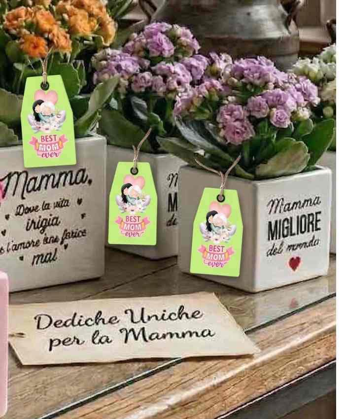 – 12 cubi per piante 7,5 cm con dedica “Mamma Migliore” e 12 Con dedica “Amore per la Mamma non finisce mai”