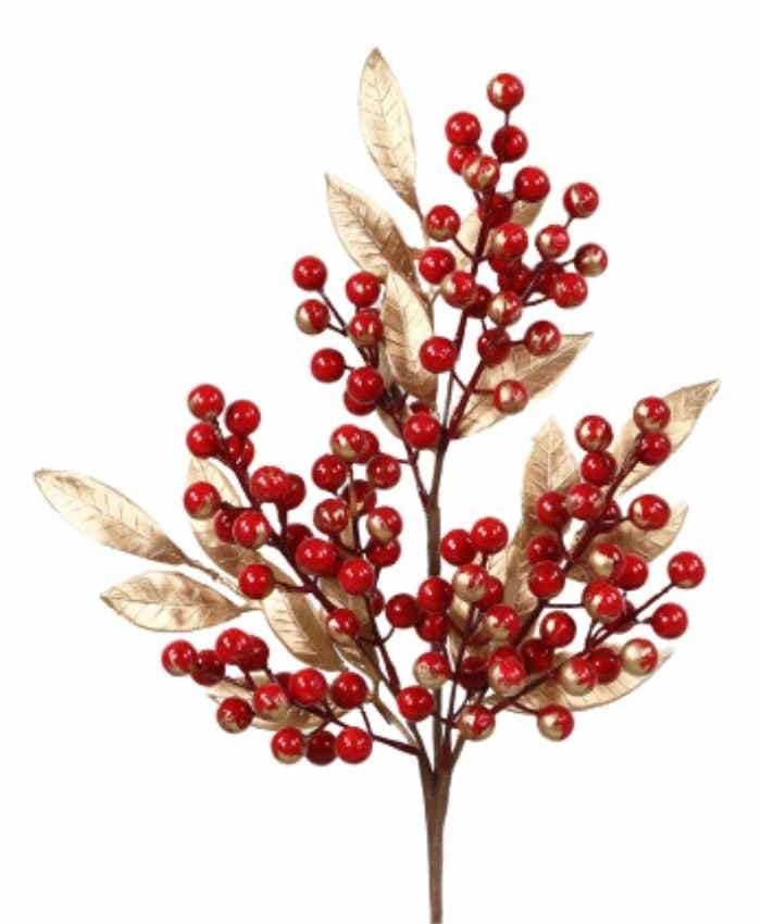 Pick Natalizio Ramo bacche Rosso Oro cm 22×5 h 57 – Serie 6 pz