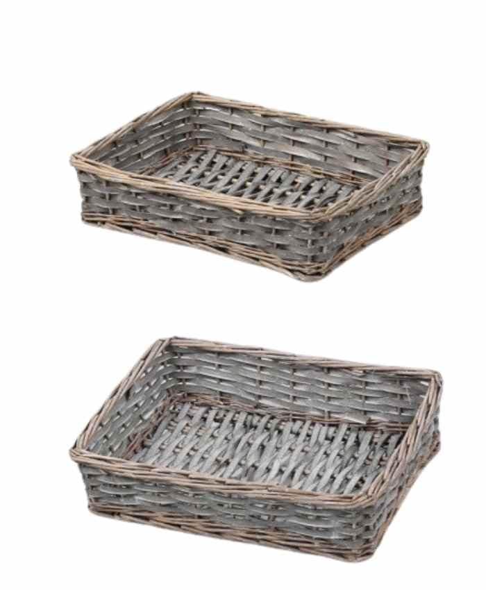 Serie 2 cesti confezionamento Natale rettangolari in vimini grigio cm 42×33 h 11 e 38×29 h 9