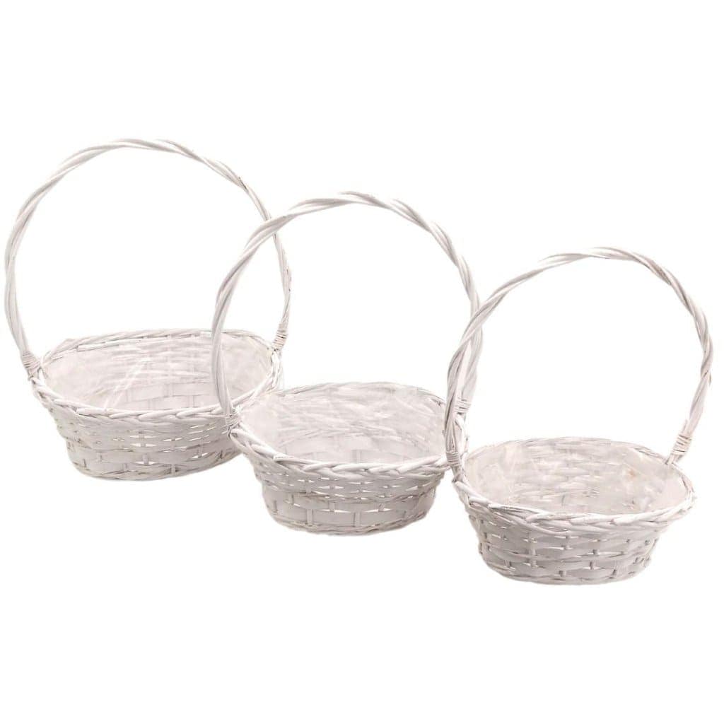 Serie 3 ceste vimini ovali manico alto intrecciato misure 25-30-36 cm