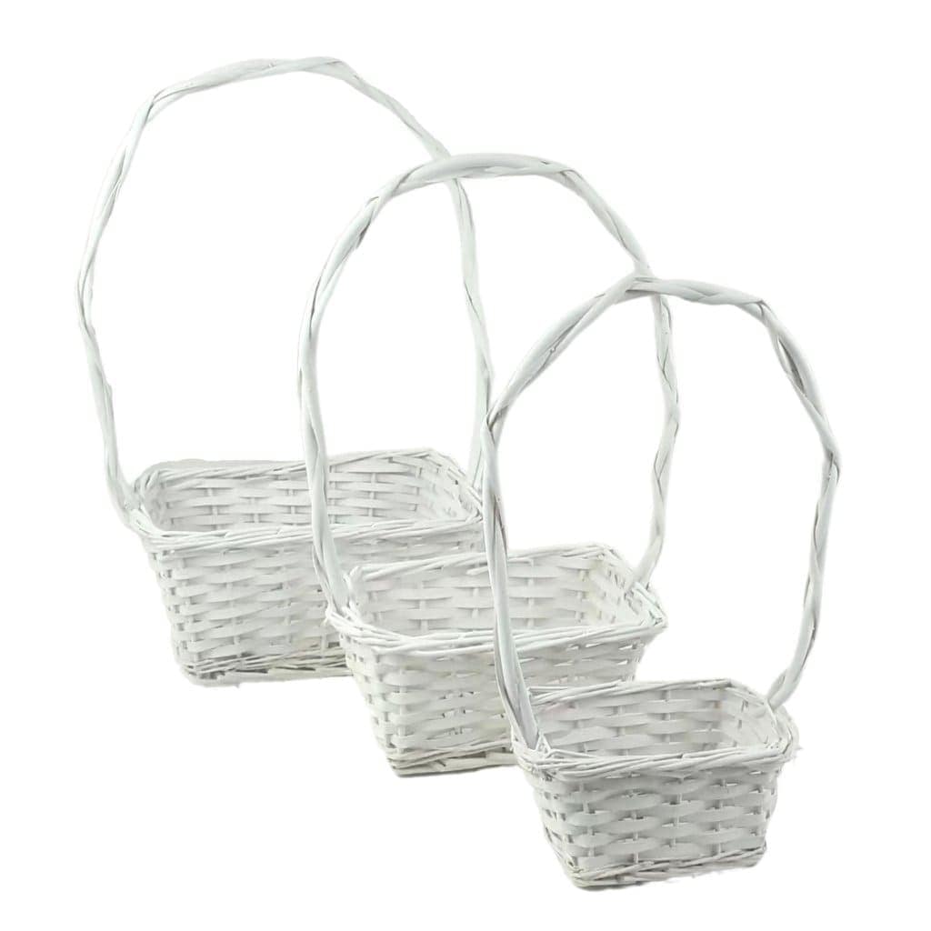 Serie 3 cesti vimini rettangolari con manico alto intrecciato misure 16-20-26 cm