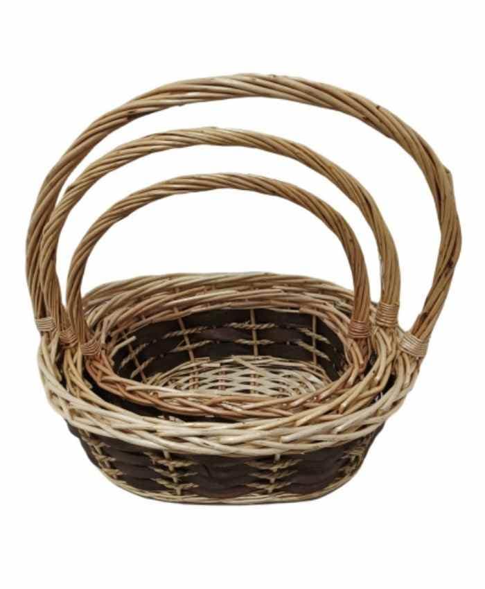 Serie 3 cesto per confezioni natalizie ovale con manico cm gr: 38×31 h 13 md:33×26 h 11 picc: 28×20 h 10