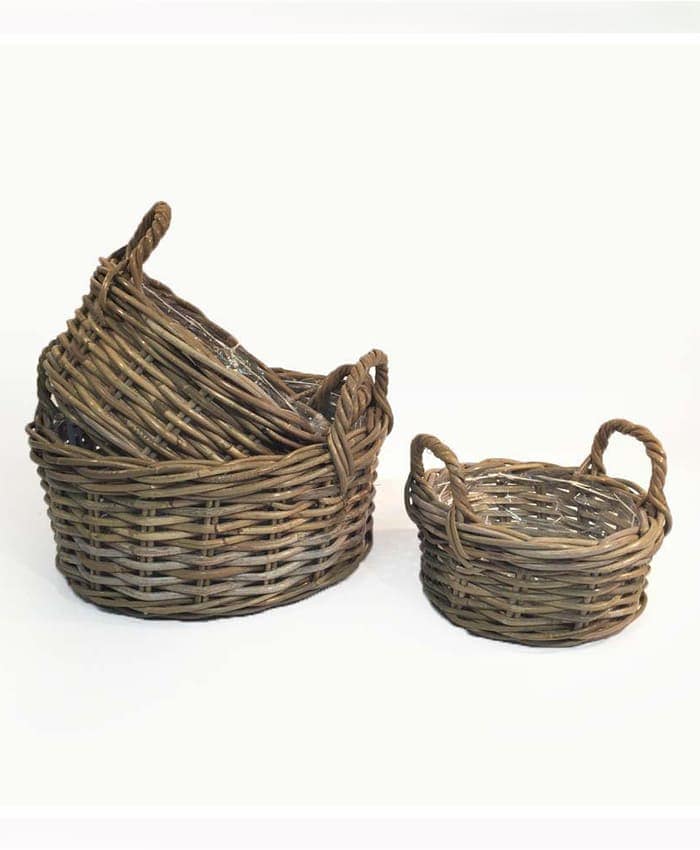 Serie 3 ciotole con manico in vimini rattan diametro 25-31-38 cm