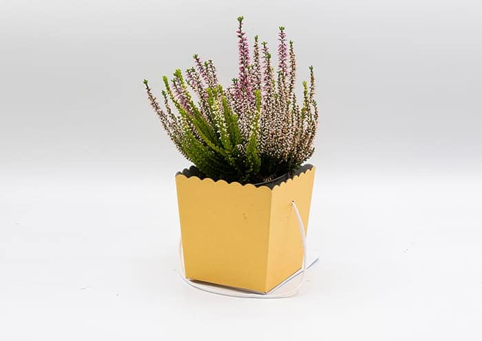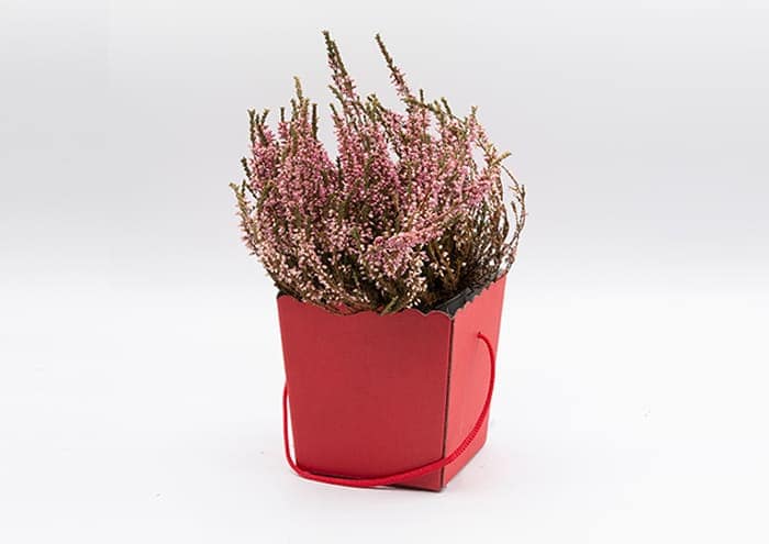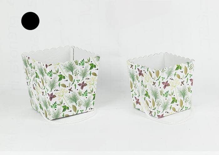 Travel flower box è una scatola di forma svasata pensata per aiutarti a confezionare velocemente piante verdi, aromatiche, grasse e fiorite in un battibaleno. E’ adatta ad ospitare piante con vaso 14-16 cm. Da notare che questa flowerbox non ha coperchio e prevede un lungo manico per facilitare il confezionamento e il trasporto delle piante.