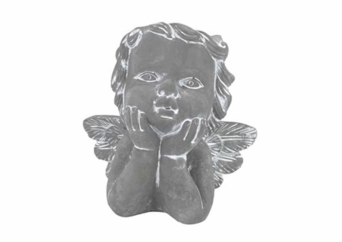 Vasi testa di angelo mani mento in cemento grigio h24 cm